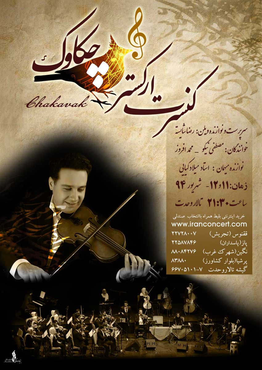ارکستر «چکاوک» به سرپرستی رضا شایسته در شامگاه 14 شهریورماه در تالار وحدت به رهبری رضا شایسته روی صحنه رفت و قطعاتی خاطره انگیز از موسیقی ایرانی را اجرا کرد. ایرج خواجه امیری، مرجانه گلچین، افسانه بایگان، عبدالرضا اکبری، بهزاد رحیم خانی، رضا فیاضی، جلیل فرجاد و … از جمله چهره های آشنایی بودند که در این کنسرت حضور داشتند. در این کنسرت، قطعه هایی از استادان اسدالله ملک، روح الله خالقی، فضل الله توکل، بزرگ لشکری و عباس شاپوری اجرا شد.